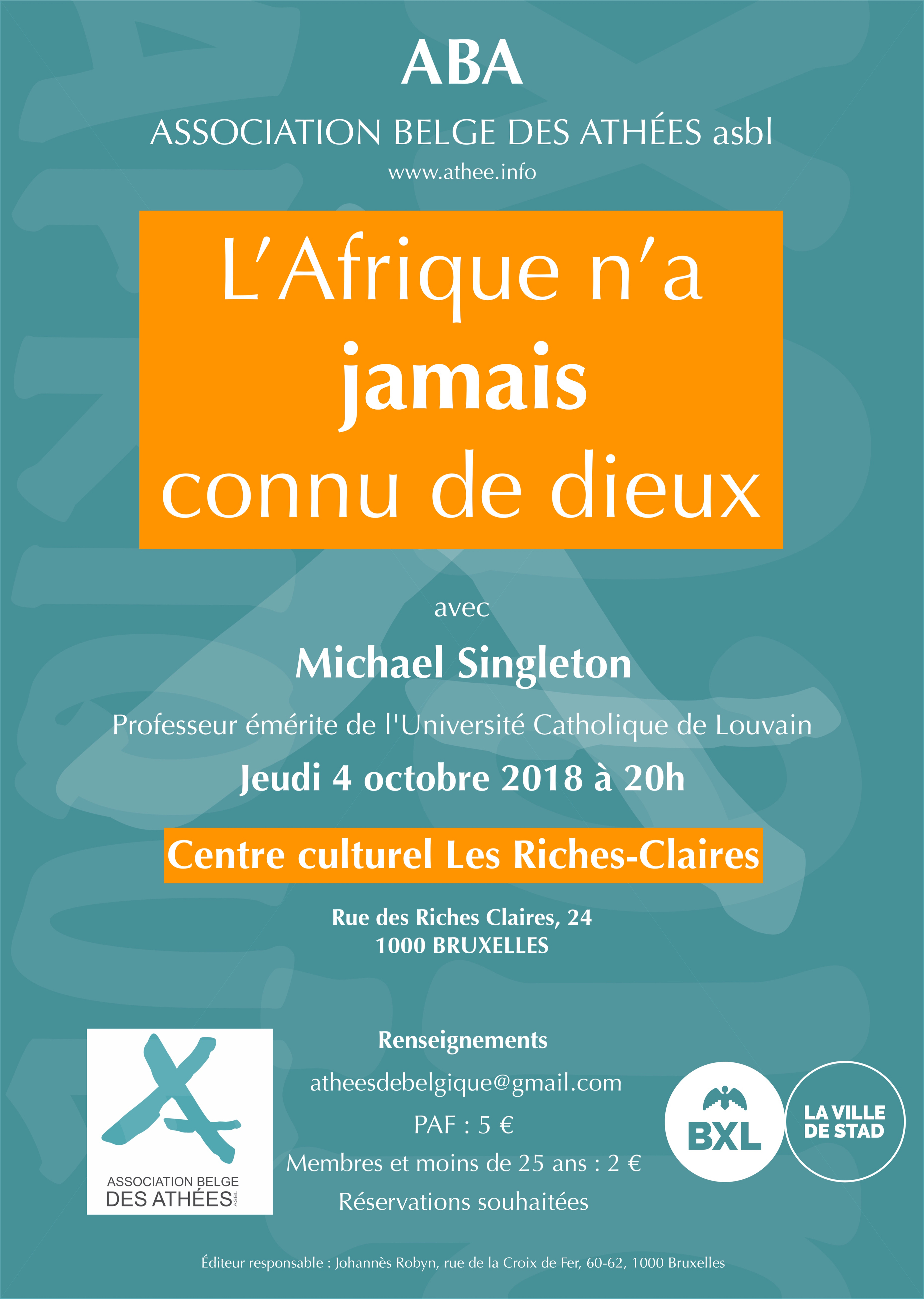 Dès 2014, l’Association Belge des Athées s’est souciée d’approfondir le sens de l’athéisme et de la religion dans les diverses parties du monde, notamment en Asie et en Extrême-Orient, mais n’avait pas pu encore examiner la problématique africaine.