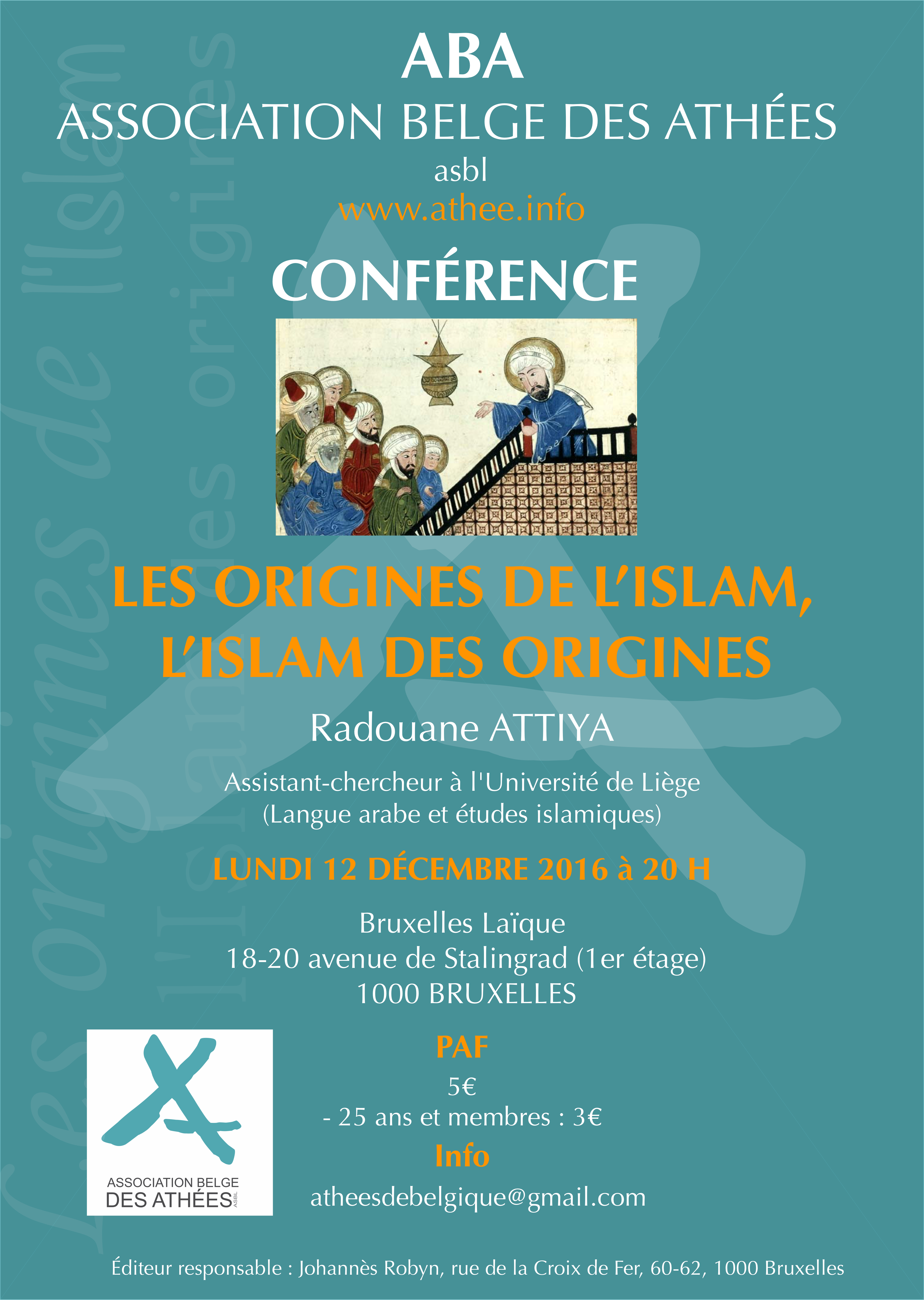 « La recherche scientifique relative aux origines de l’islam ou à l’islam des origines explore à l’heure actuelle de nouvelles pistes. En rupture avec les récits circonstanciés de la tradition musulmane sur ses propres origines, les recherches occidentales corroborées par de récentes découvertes archéologiques et papyrologiques au sein de la péninsule arabique et du Proche-Orient, contribuent à dresser un portrait plus précis, mais non définitif, de la genèse de l’islam. Un panorama succinct de ces travaux permettra une mise en perspective, sans concession, de l’islam primitif et des islams contemporains dans leurs dimensions rituelle, symbolique et sociétale. »