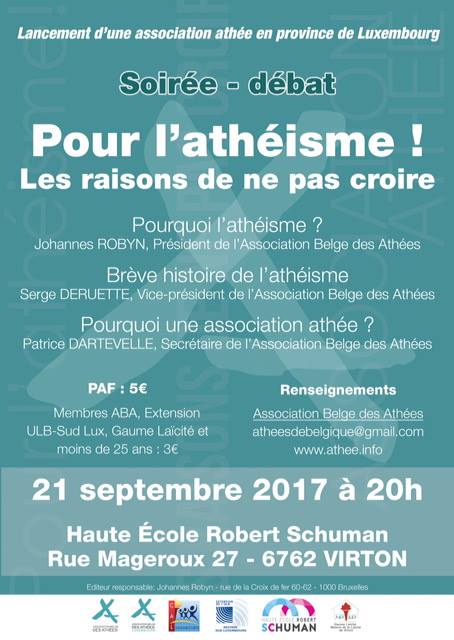 Une section de l’Association Belge des Athées en province de Luxembourg !